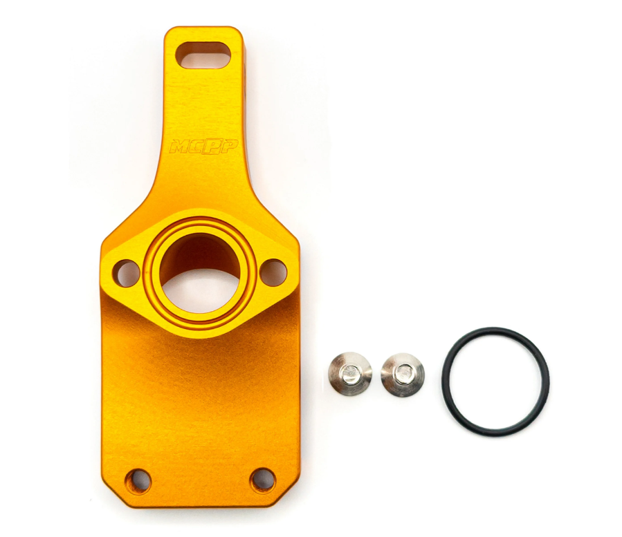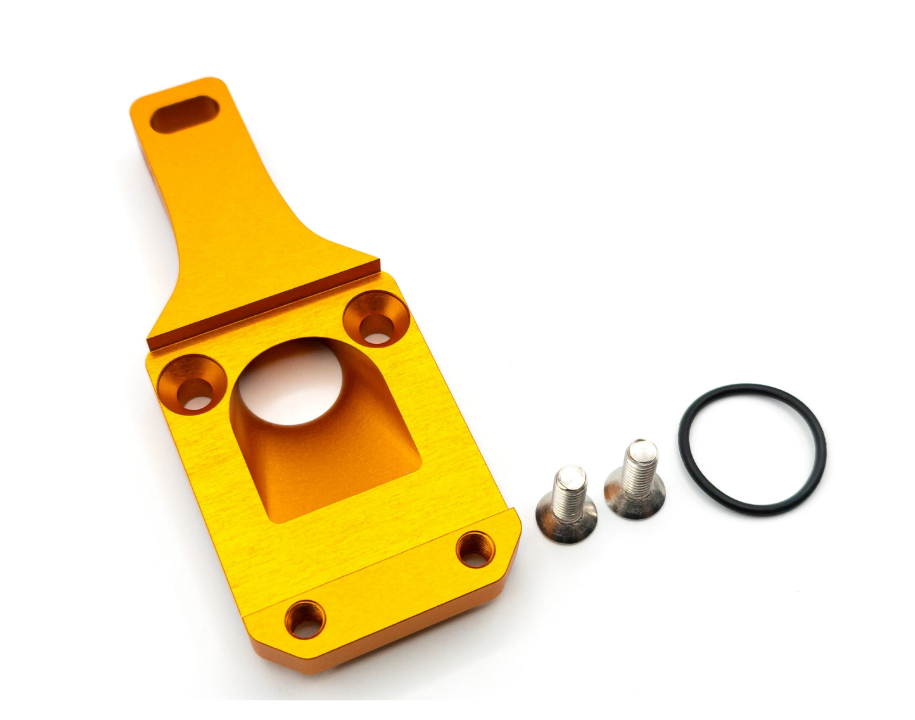 La piastra del carburatore è realizzata in alluminio 6062 T6 e anodizzata in oro. Oltre alla possibilità di installazione in spazi ristretti come nel Ciao, il collettore di aspirazione consente un percorso di aspirazione significativamente più breve e quindi un comportamento di risposta significativamente migliore.