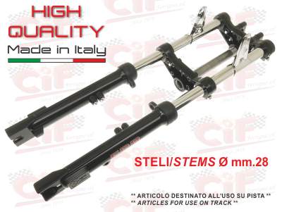 Forcella idraulica a doppio pompante con steli d.28 Piaggio Ciao con predisposizione freno a disco